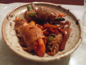 それでもにんじんが余り、結局単体でフライパンに放り込みました<写真でちょろちょろと見え隠れしてる物体がそれですね