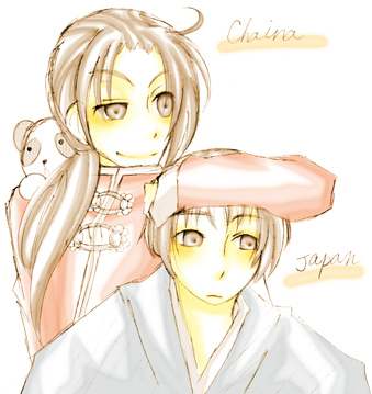 ヘタリア(http://www.geocities.jp/himaruya/hetaria/index.htm)の中国と日本。