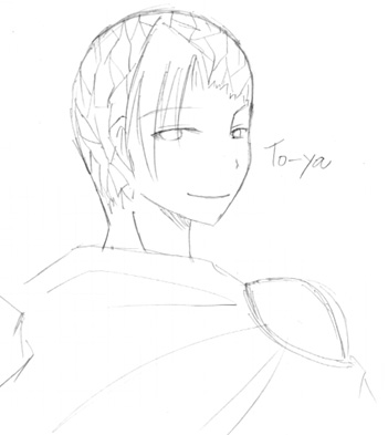 私が描くとアホっぽい顔になってしまいますが、彼はこういうキャラ位置だと思います。