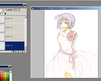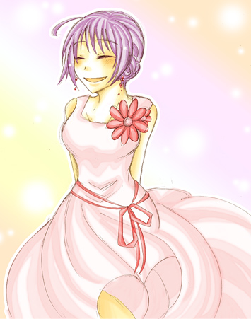 お洒落したアイラさん(中身テツ…思いっきり笑顔)を描いてみました。